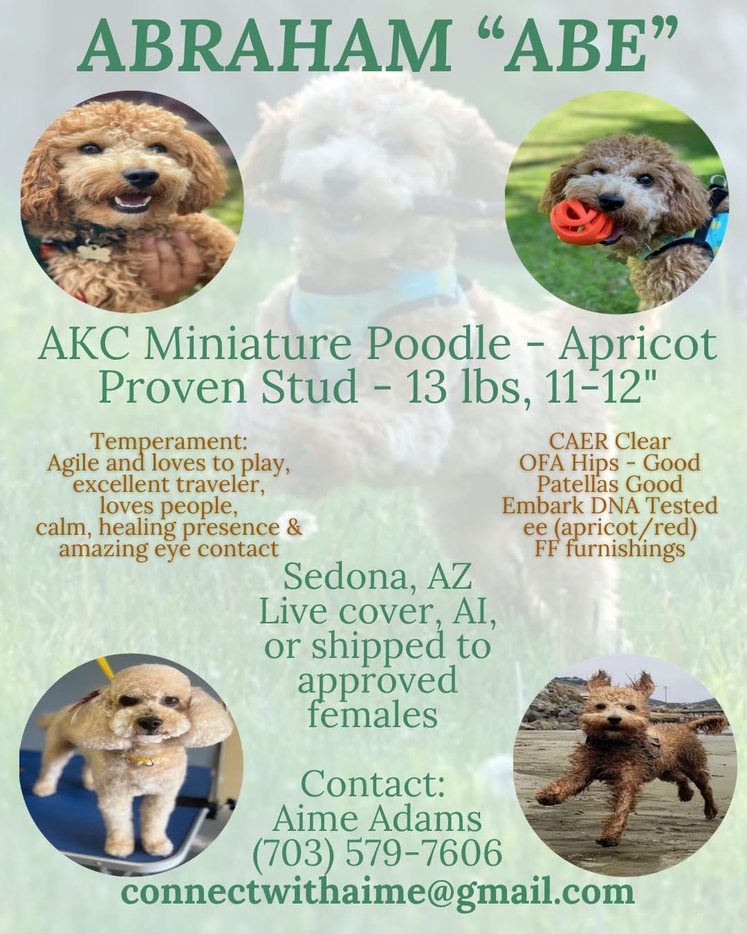 Abe’s lineage, temperament, and care are held to high standards, with a focus on health, emotional stability, and alignment with a conscious lifestyle. His presence brings joy, connection, and a sense of grounding that reflects the values of Studio